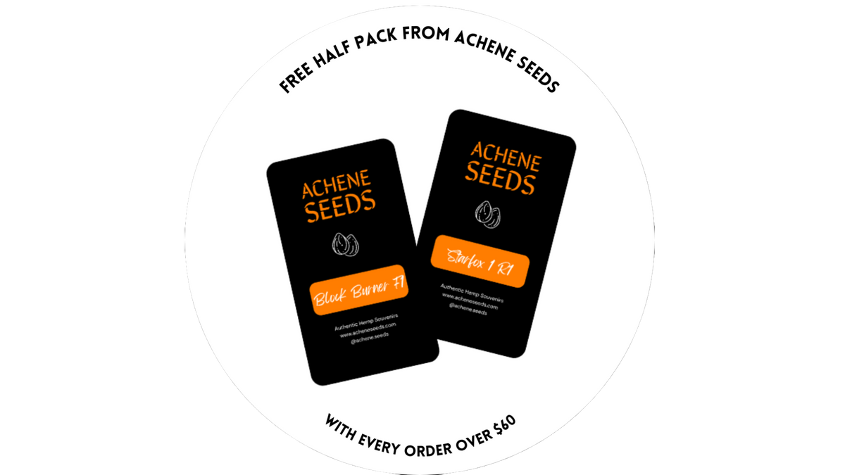Spend only $60 and get FREE shipping and a FREE half pack from Achene Seeds.